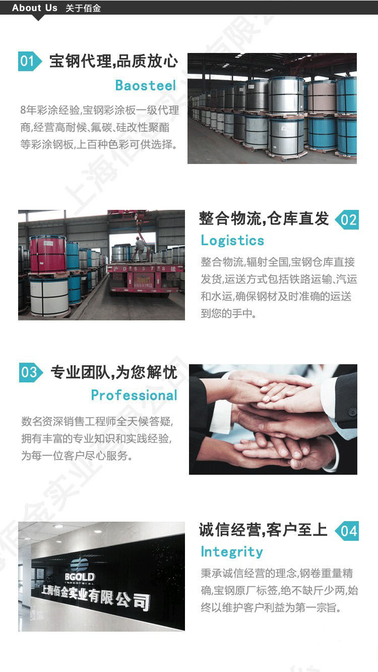 佰金華中銷(xiāo)售中心施行全方位的服務(wù),即鋼結(jié)構(gòu)維護(hù)系統(tǒng)選材,配色,銷(xiāo)售,壓型加工、物流一站式服務(wù),竭誠(chéng)為華中地區(qū)廣大用戶提供優(yōu)質(zhì)、及時(shí)的服務(wù)。